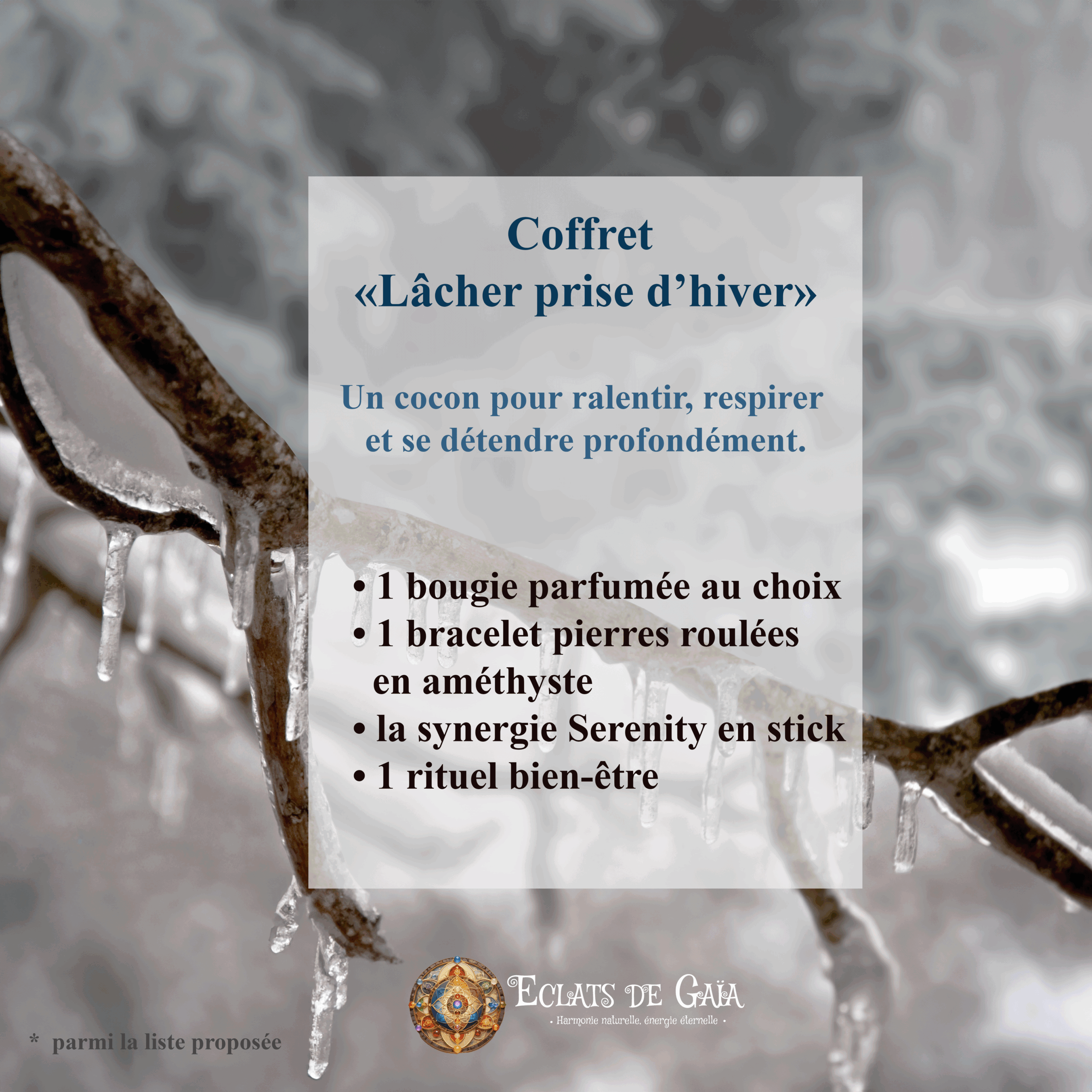 Le coffret Lâcher prise d’hiver a été imaginé comme un véritable cocon de douceur pour traverser la saison froide avec plus de calme, de lenteur et de sérénité. Il accompagne les moments de fatigue, de surcharge mentale ou de besoin de réconfort profond.