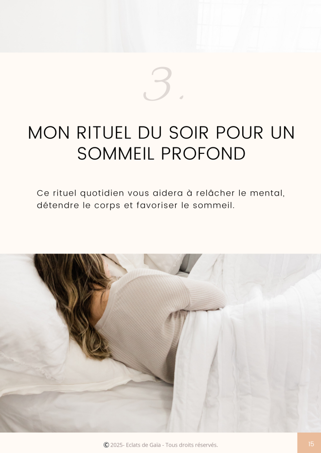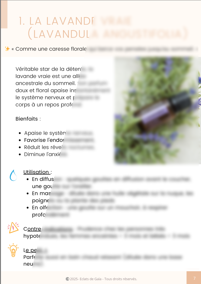Cet ebook vous guide pas à pas pour utiliser les huiles essentielles sommeil profond afin de retrouver des nuits calmes, réparatrices et vraiment régénérantes. Vous y découvrirez comment le stress, les pensées en boucle, les émotions chargées ou les mauvaises habitudes peuvent perturber le repos, et comment la nature peut vous soutenir avec douceur pour rétablir un sommeil serein.